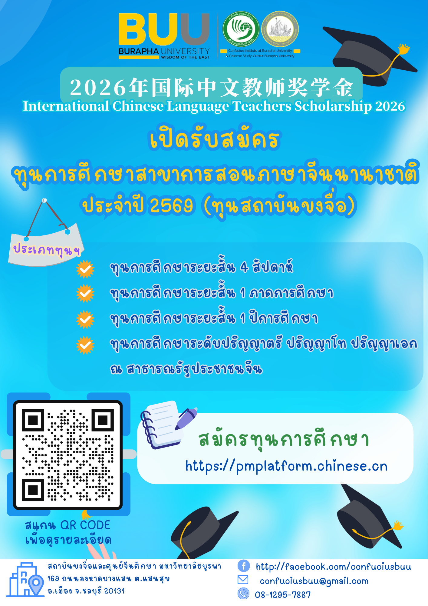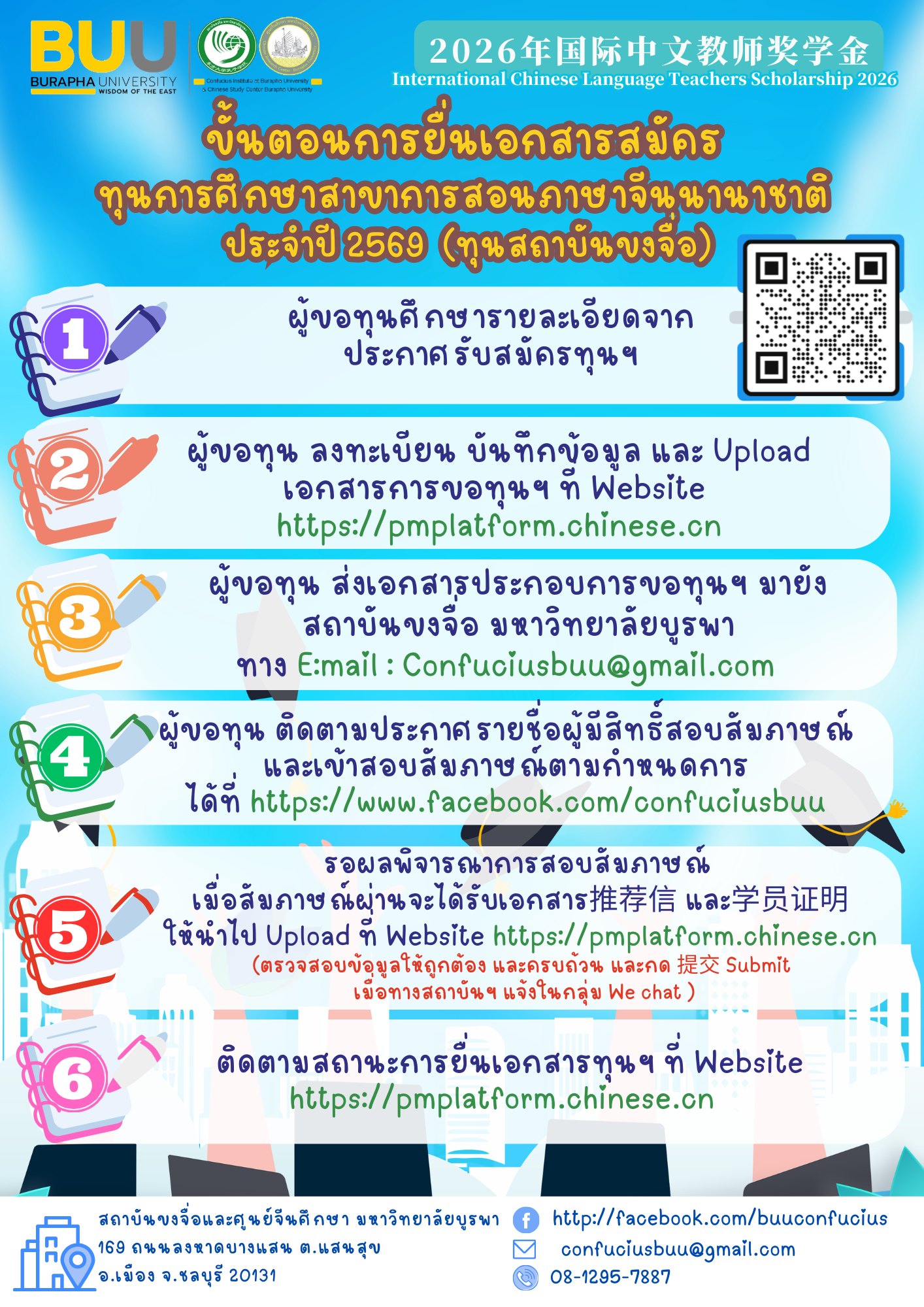 โดยยื่นเอกสารผ่านสถาบันขงจื่อ มหาวิทยาลัยบูรพา