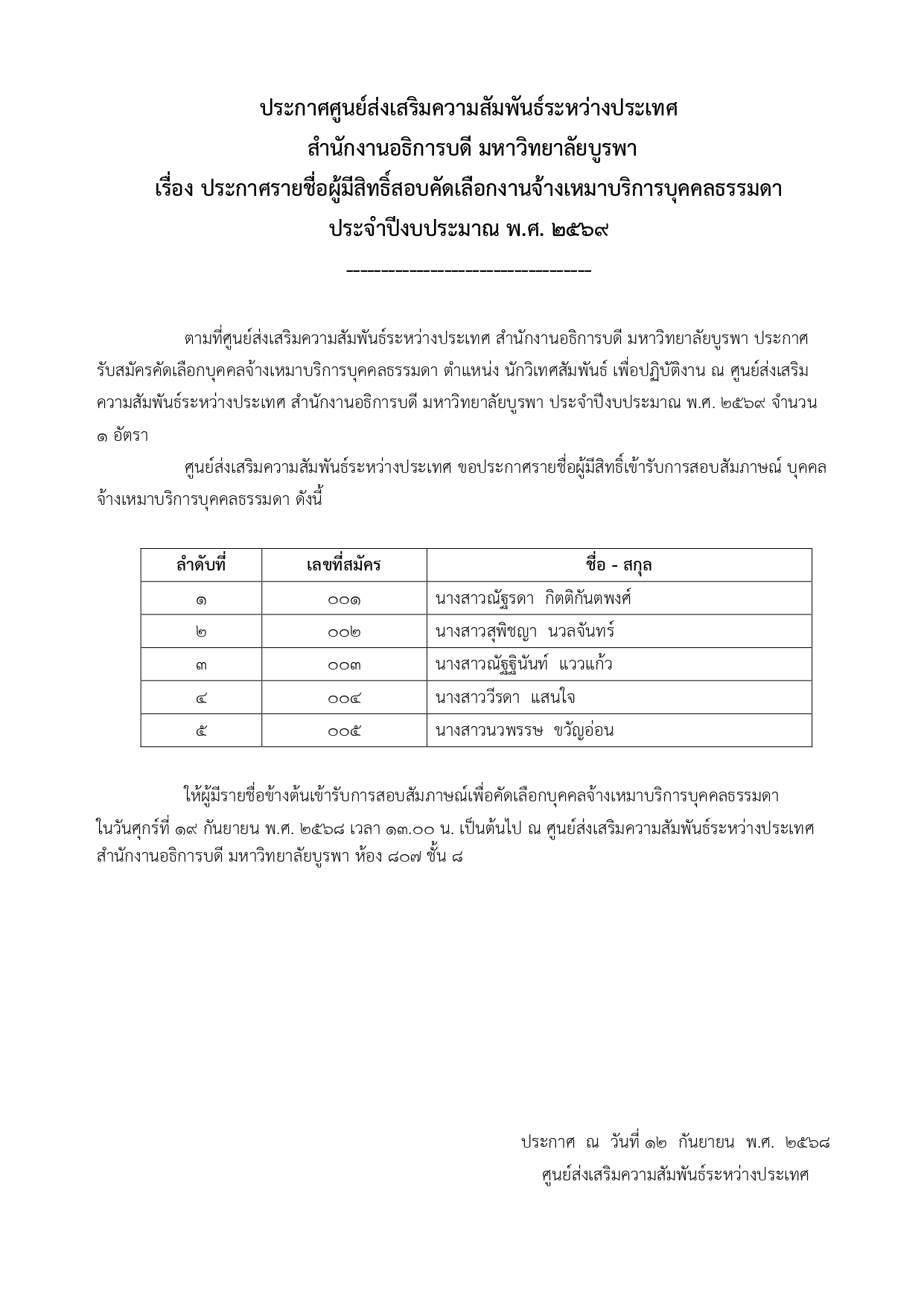 หน้าหลัก ข่าวประชาสัมพันธ์ รายละเอียด ประกาศรายชื่อผู้มีสิทธิ์สอบคัดเลือกงานจ้างเหมาบริการบุคคลธรรมดา ประจำปีงบประมาณ พ.ศ. 2569 ประกาศวันที่ : 11 กันยายน พ.ศ. 2568, โดย : จันจิรา วงษ์ศรี